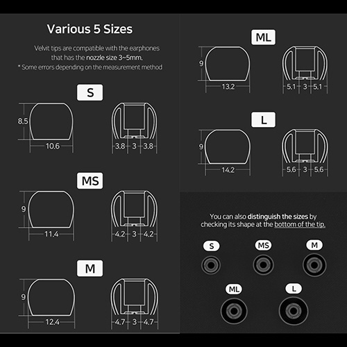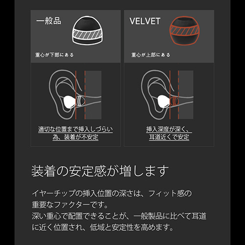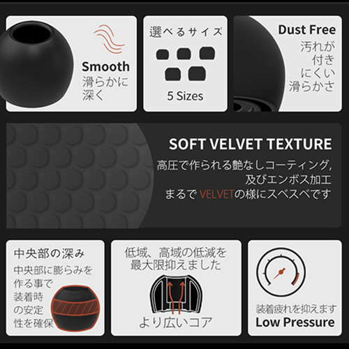 イヤーピース VELVET S/MS/M/ML/L 各1ペア VELVET