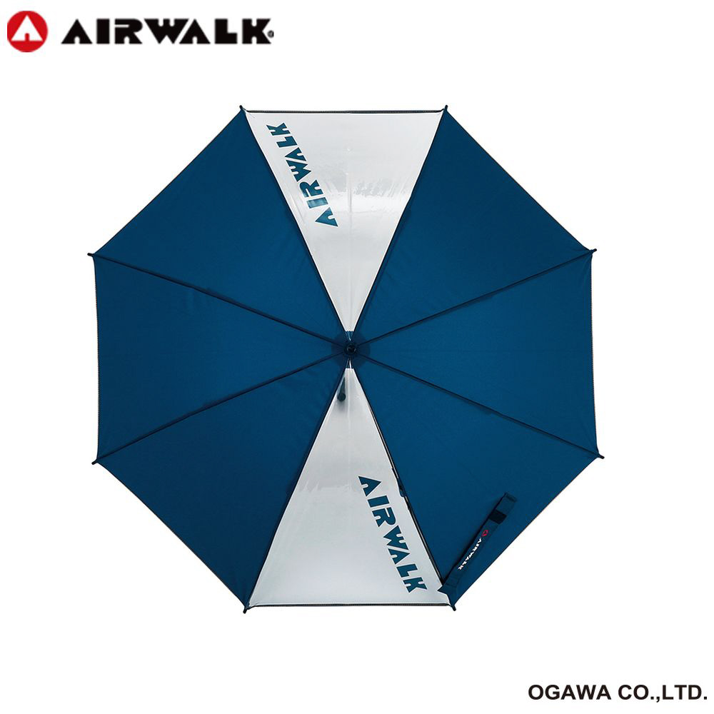 シンプルなAIR WALKロゴが入った無地のジャンプ式長傘です。2コマ透明窓で安全面もばっちり。傘の開くのに便利な、ワンタッチで開くジャンプ式の長傘です。