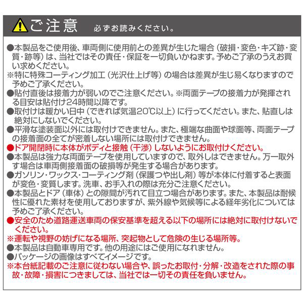 ●両面テープでボディ表面にぴったりと貼付くため、取付後、隙間に苔等が発生しにくい設計です。