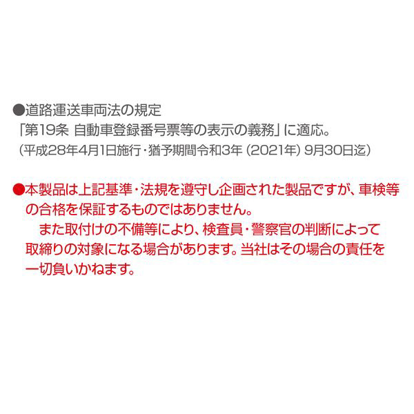 ・道路運送車両法の規定「第19条自動車登録番号票等の表示義務」に適応。