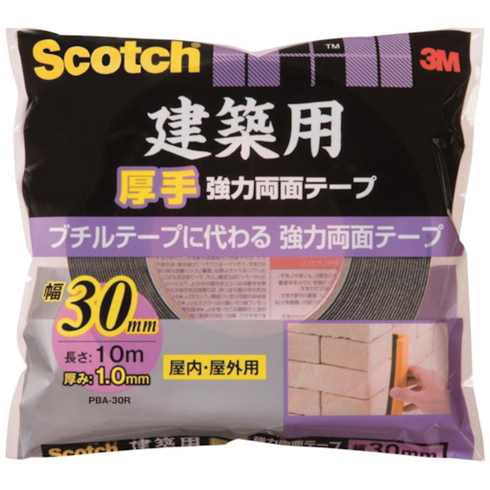 スコッチ 建築用厚手強力両面テープ 30mm×10m 黒 PBA-30R