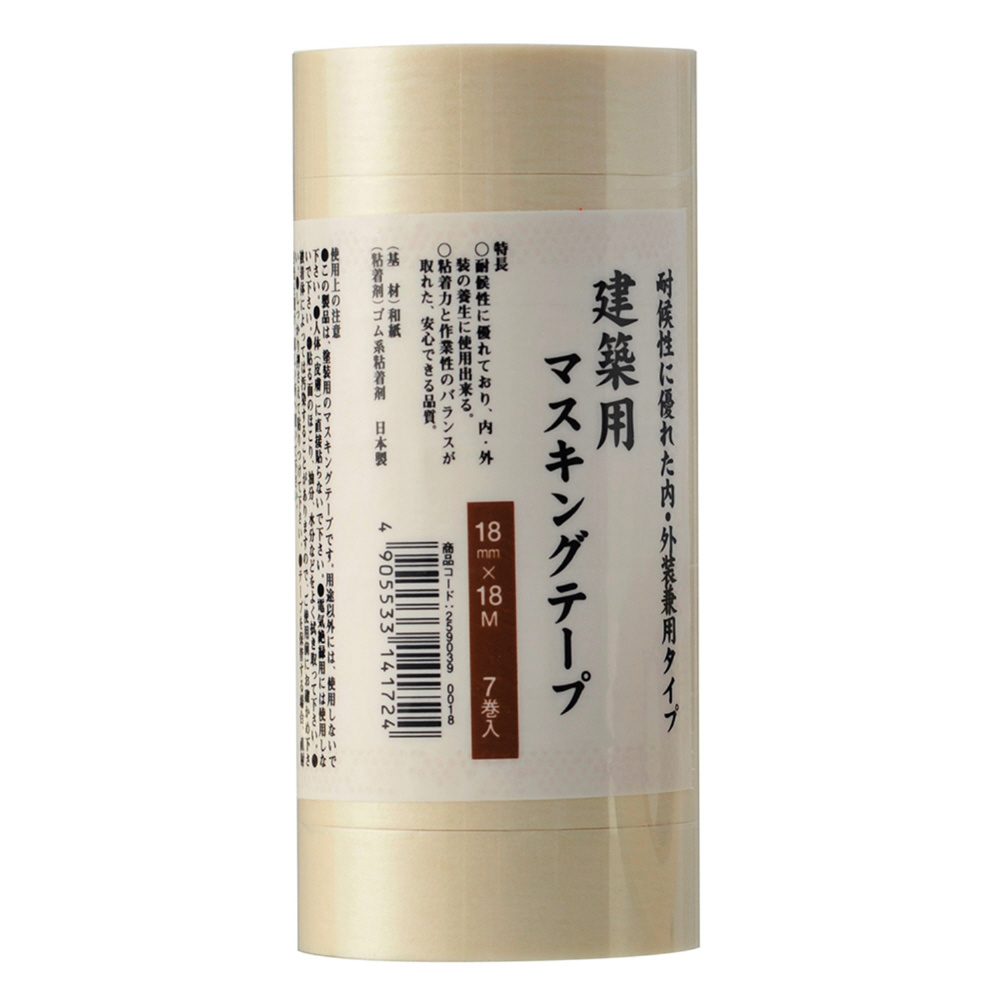 建築用マスキングテープ 白 筒 7巻入 18mm×18m