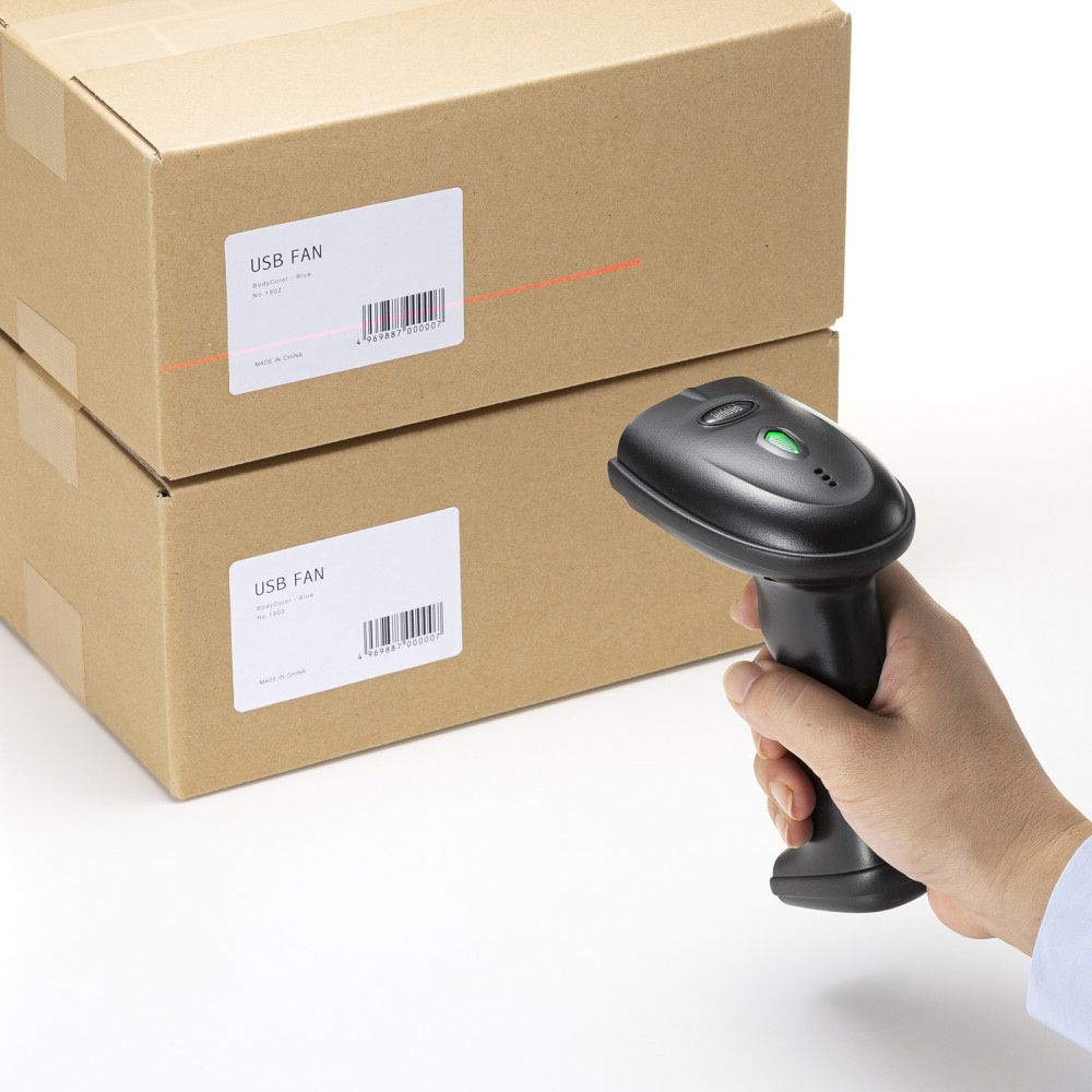 視認性の良いレーザータイプの2.4GHzワイヤレスバーコードリーダー。
