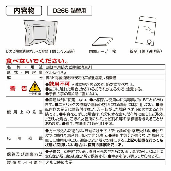 成分:防カビ除菌消臭剤(安定化二酸化塩素)、有機酸