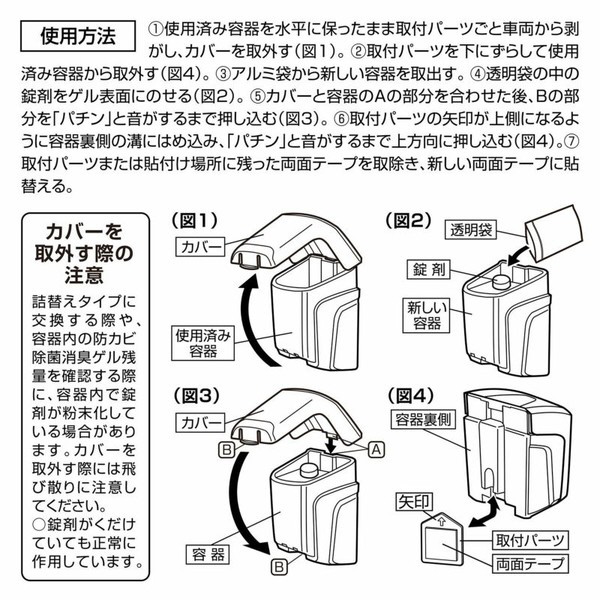 1.使用済み容器を水平に保ったまま取付パーツごと車両から剥がし、カバーを取外す。