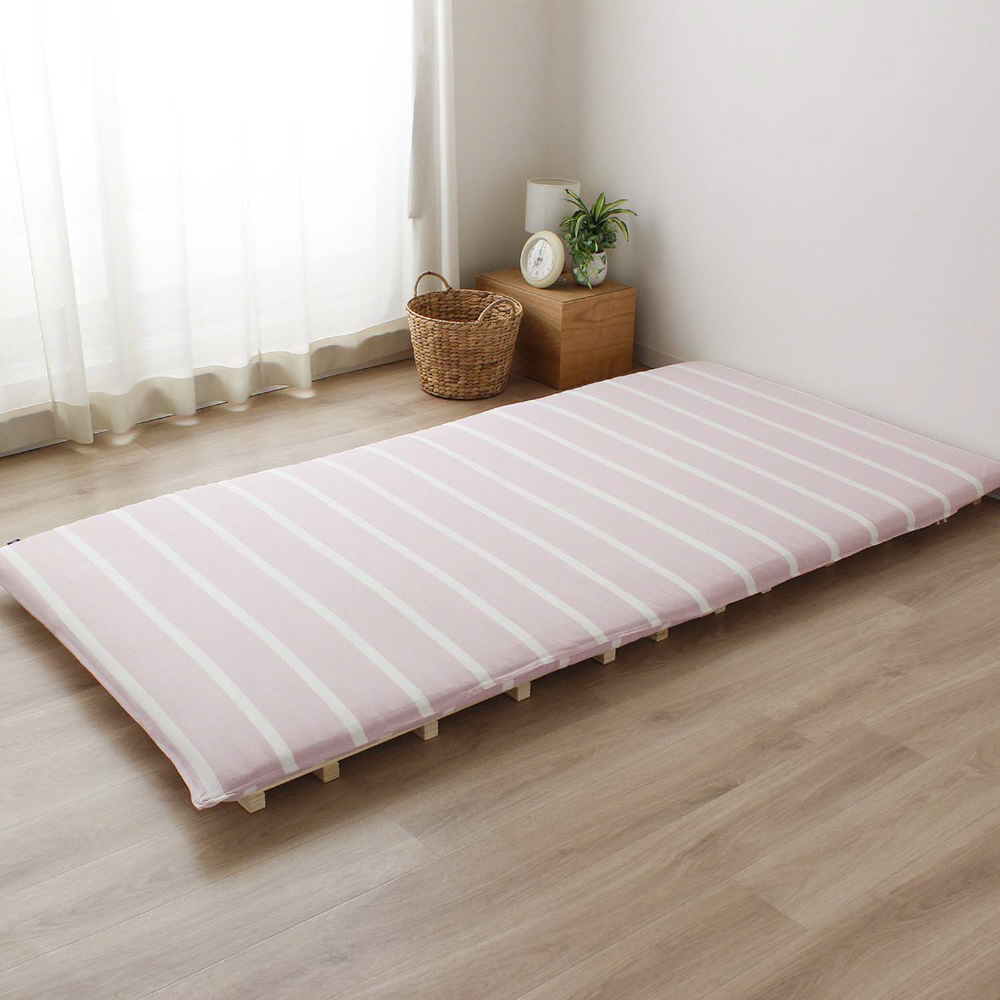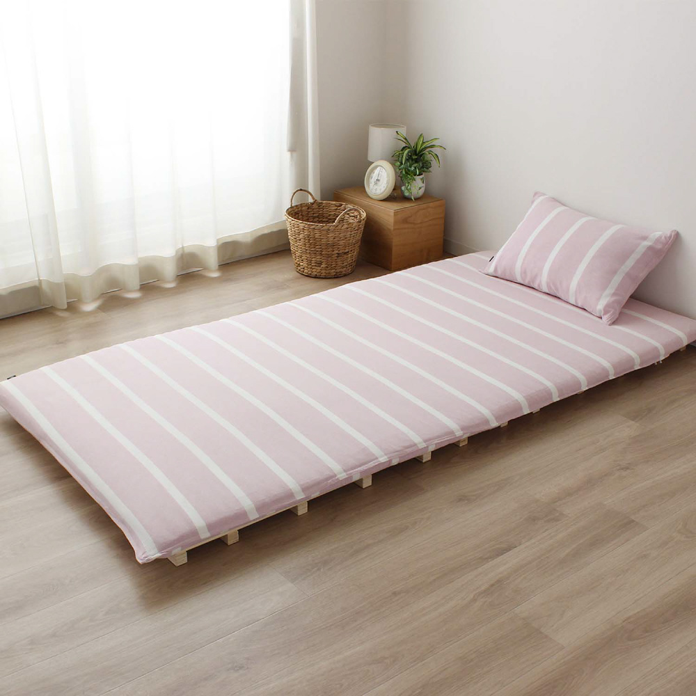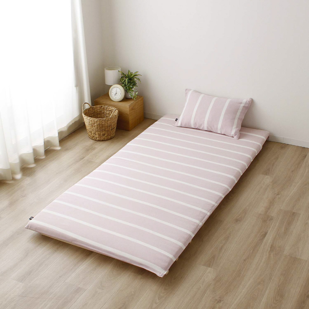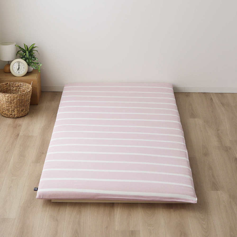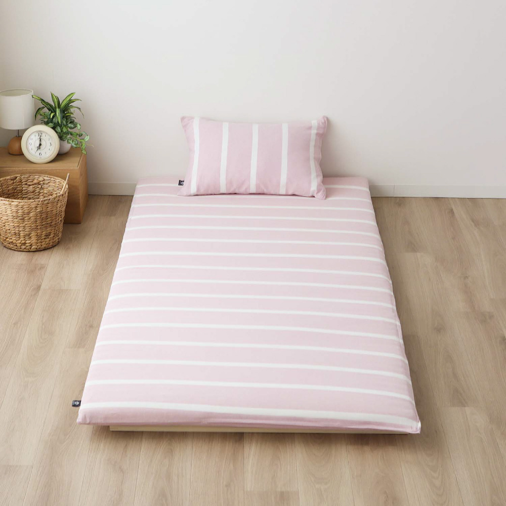 【敷ふとんカバー】Hyppiness 綿100%洗いざらし シングルロングサイズ ボーダー柄 (105×215cm) ピンク HP33032-16