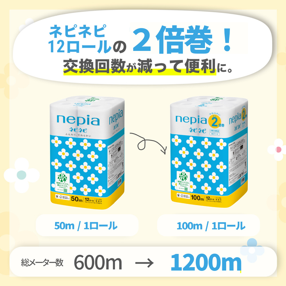 nepia(ネピア)ネピネピ トイレットロール 2倍巻[12ロール/シングル/100m]