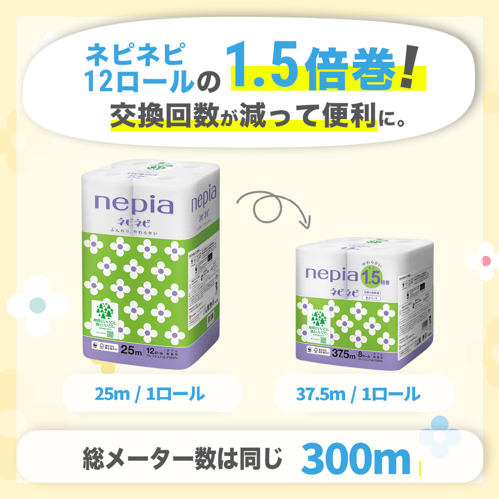 nepia(ネピア)ネピネピ トイレットロール 1.5倍巻[8ロール/ダブル/37.5m]