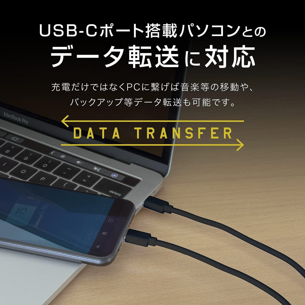 Power Deliveryに対応したUSB-Cポート搭載充電器と合わせて使用することで、スマートフォンを30分で最大50%まで再充電可能な、C to Cケーブルです。