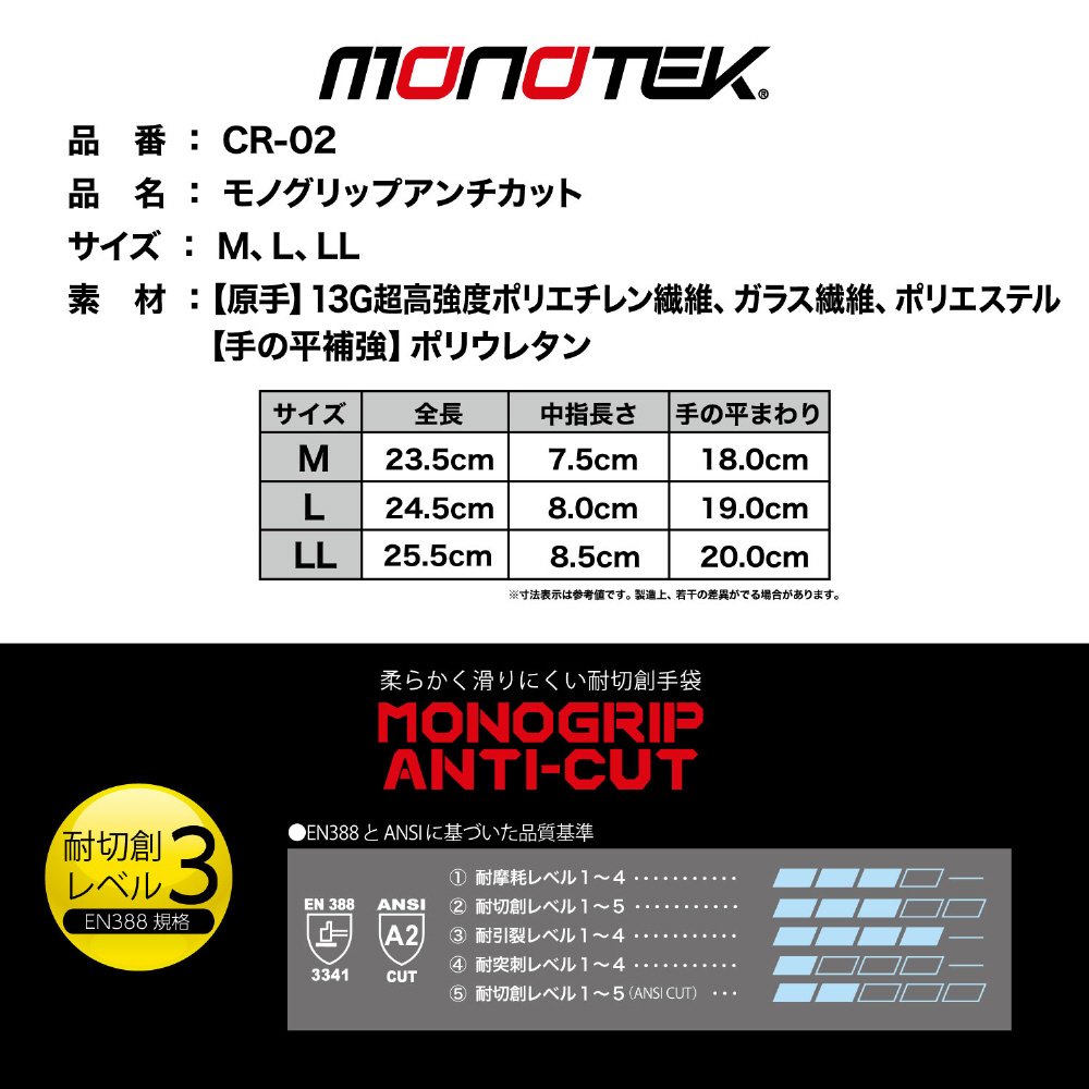 仕様2 L:全長24.5cm中指長さ8cm手の平まわり19cm
