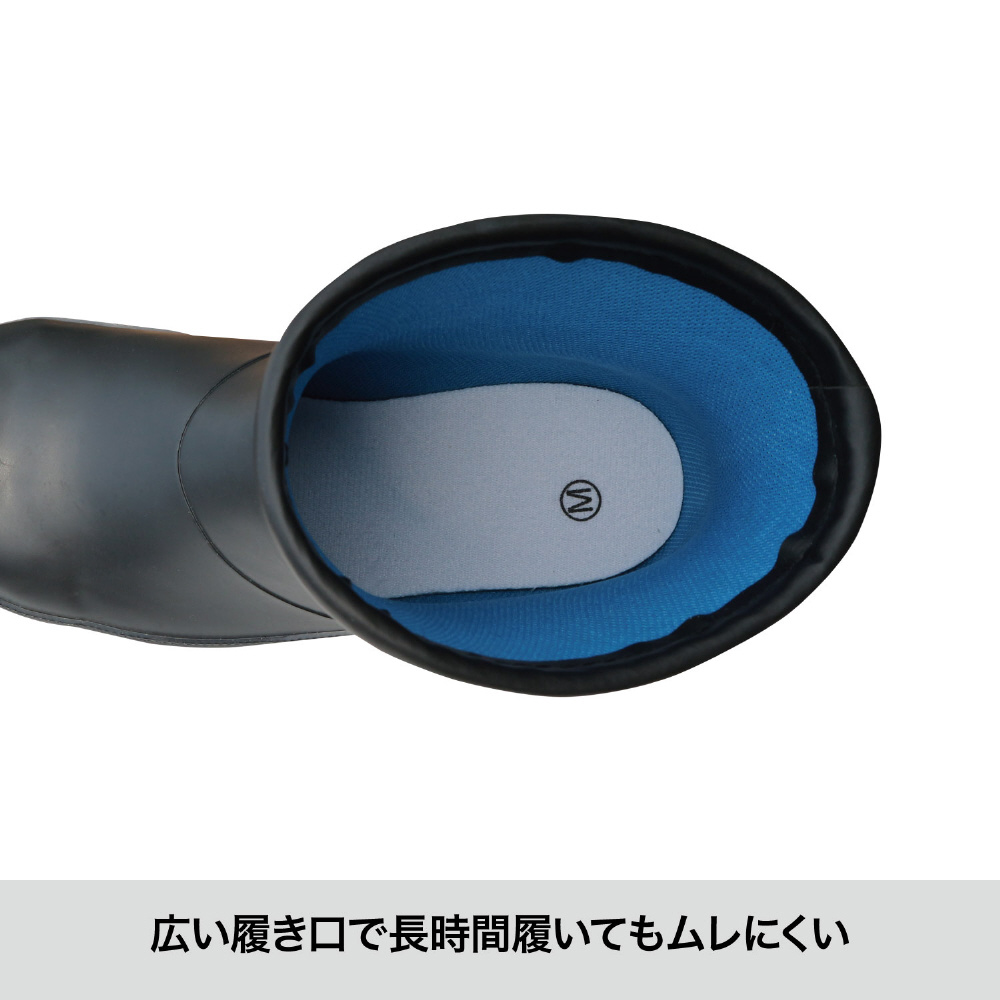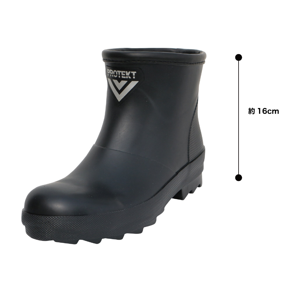 丈16cm(Lサイズ)のベリーショートタイプで着脱が容易な樹脂先芯入りの安全長靴です。