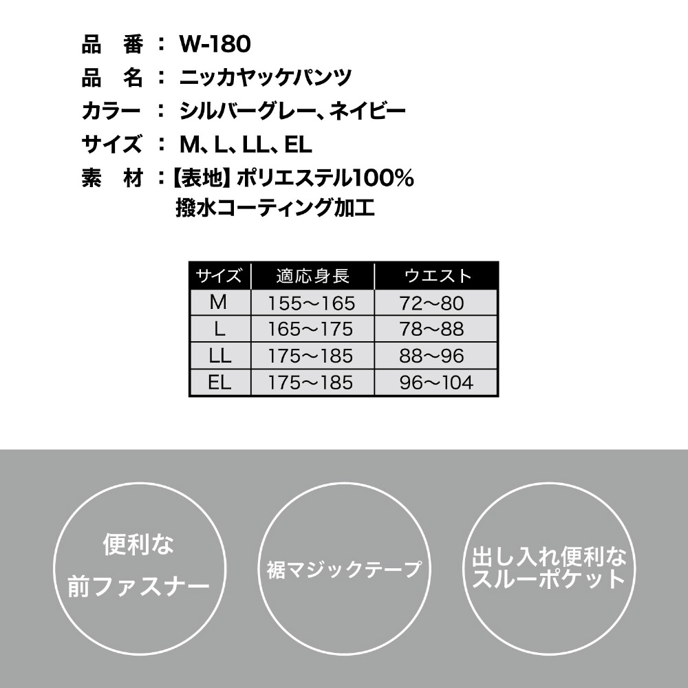 ニッカヤッケパンツ ネイビー L W-180 NV L ネイビー W-180