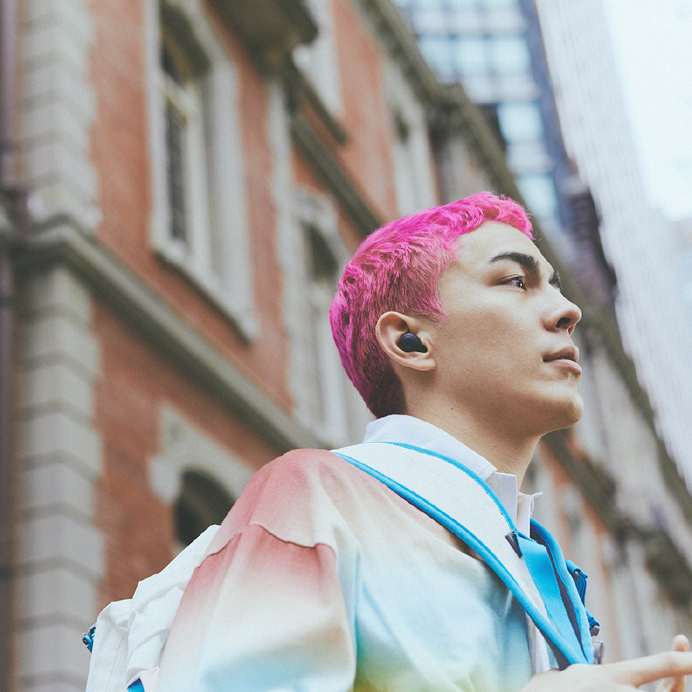音声コンテンツを聴きながら、周囲の音も聞こえる「アンビエントサウンド(外音取り込み)モード」を搭載しました。さらに、外音の取り込み方のレベルを20段階で調整可能。自分の好きな外音取り込みのレベルに設定できるので、シーンに応じて快適に音楽を楽しむことができます。