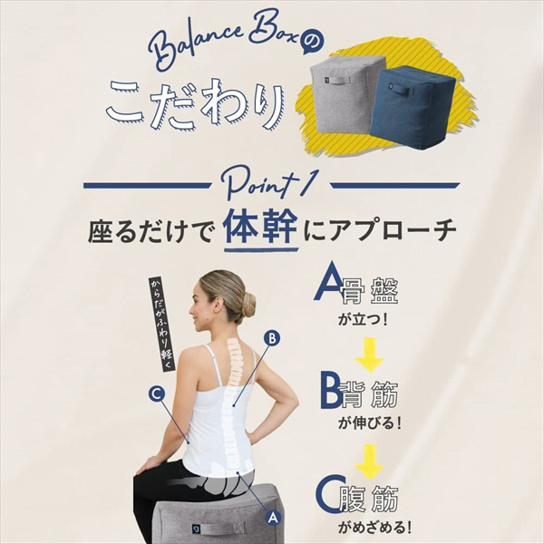 いつもの椅子を変えるだけで簡単に体幹トレーニングができる、新感覚スクエア型バランスボール。