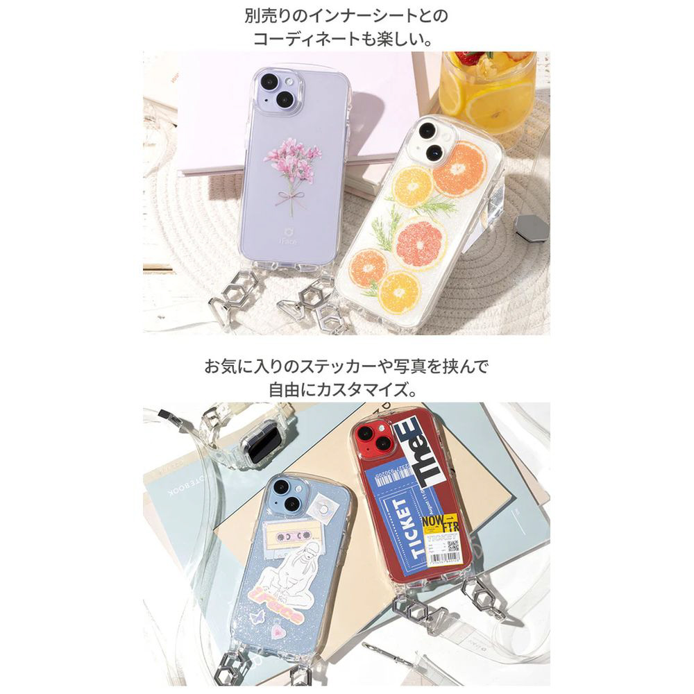 透明なのでiPhoneの本体の色を楽しむのも、iFaceインナーシートやシールなどを挟んでアレンジを楽しむのもおすすめ。