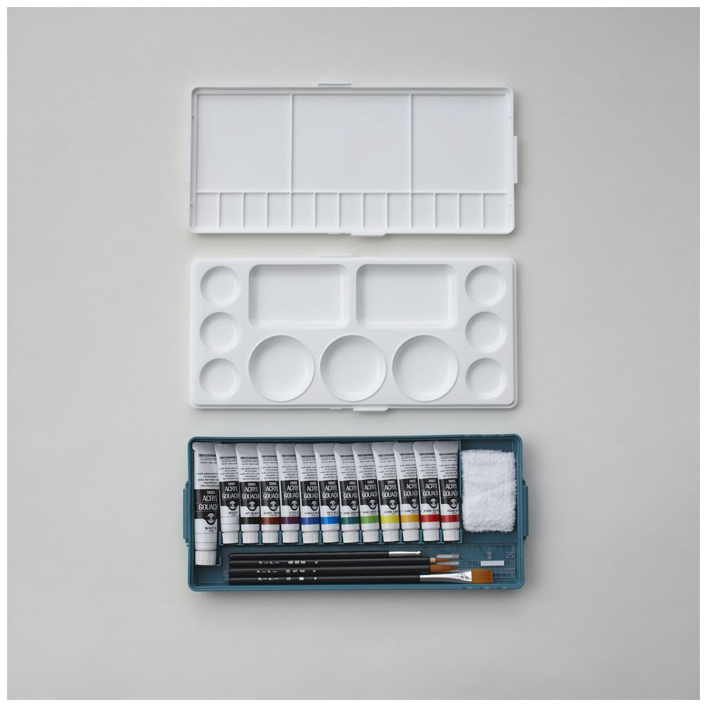 仕様1 Wパレットケース 11ml12色 20mlホワイト 黒軸デザイン筆3本セット 黒軸棒 アクリル溝付定規25p ミニフキン