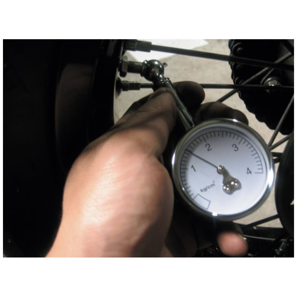 ■目盛は10kPaからと細かく、400kPaまで測定できるのでバイクのタイヤに使用できます。