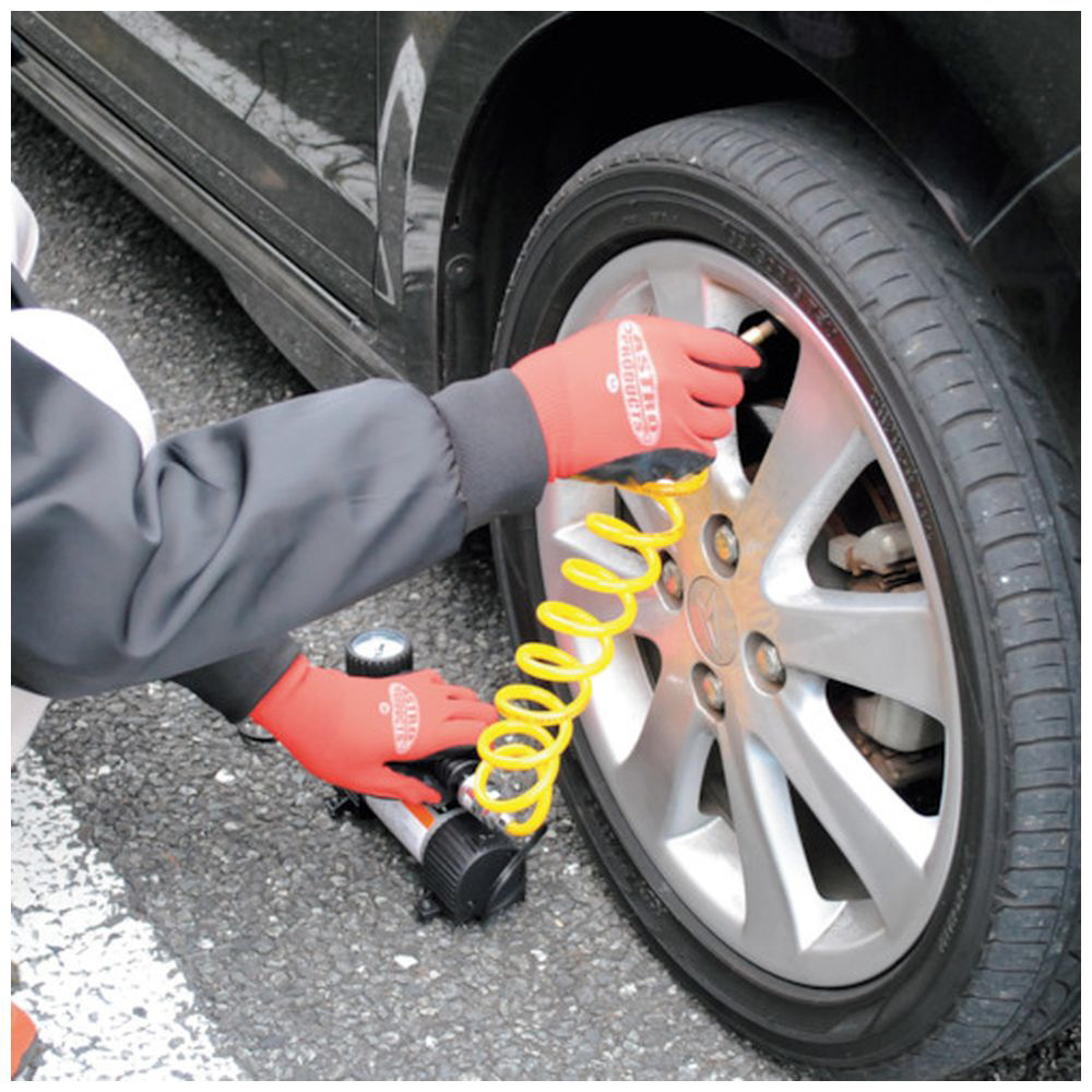 DC12V車のシガーソケット電源で、タイヤなどに空気を充填することができる、ミニエアーコンプレッサーです。