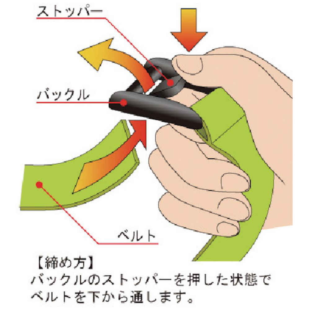 ■ベルトをバックルに通して引っ張るだけで、簡単に締め付けできます。
