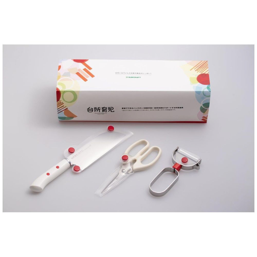 子どもでも使いやすい包丁、キッチンバサミ、ピーラーの3点がセットになっています。