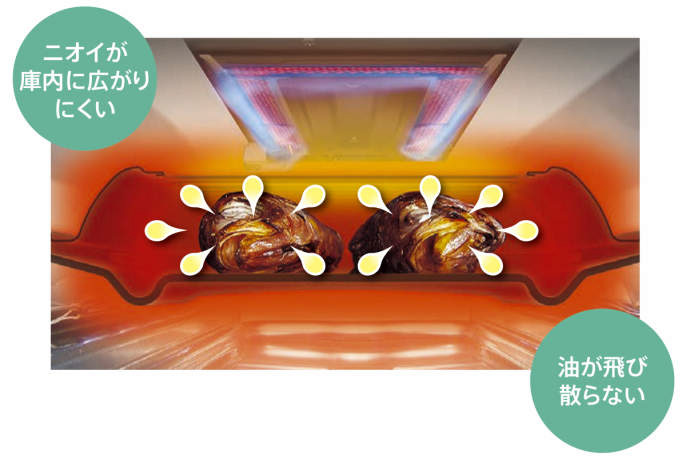 天ぷらやフライ物など、直火でサクッと自動であたため直しができます。
