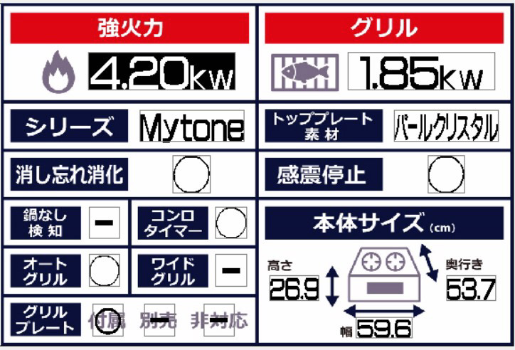 ビルトインガスコンロ パールクリスタル ココットプレート付属
