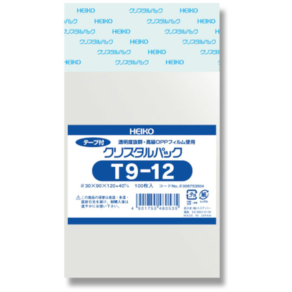 HEIKO OPP袋 クリスタルパック テープ付 T9-12 100枚入り 6753504