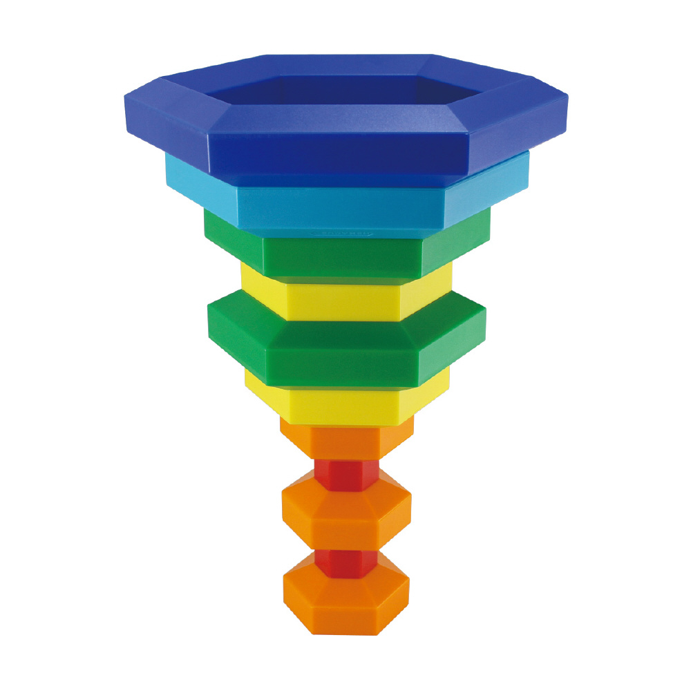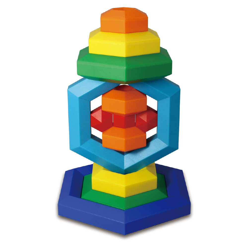 ヘキサカスは、手を動かし色々な色を目で見てスタッキングやネスティングをする事で、色彩感覚、バランス感覚、空間認知能力を高めることができます。