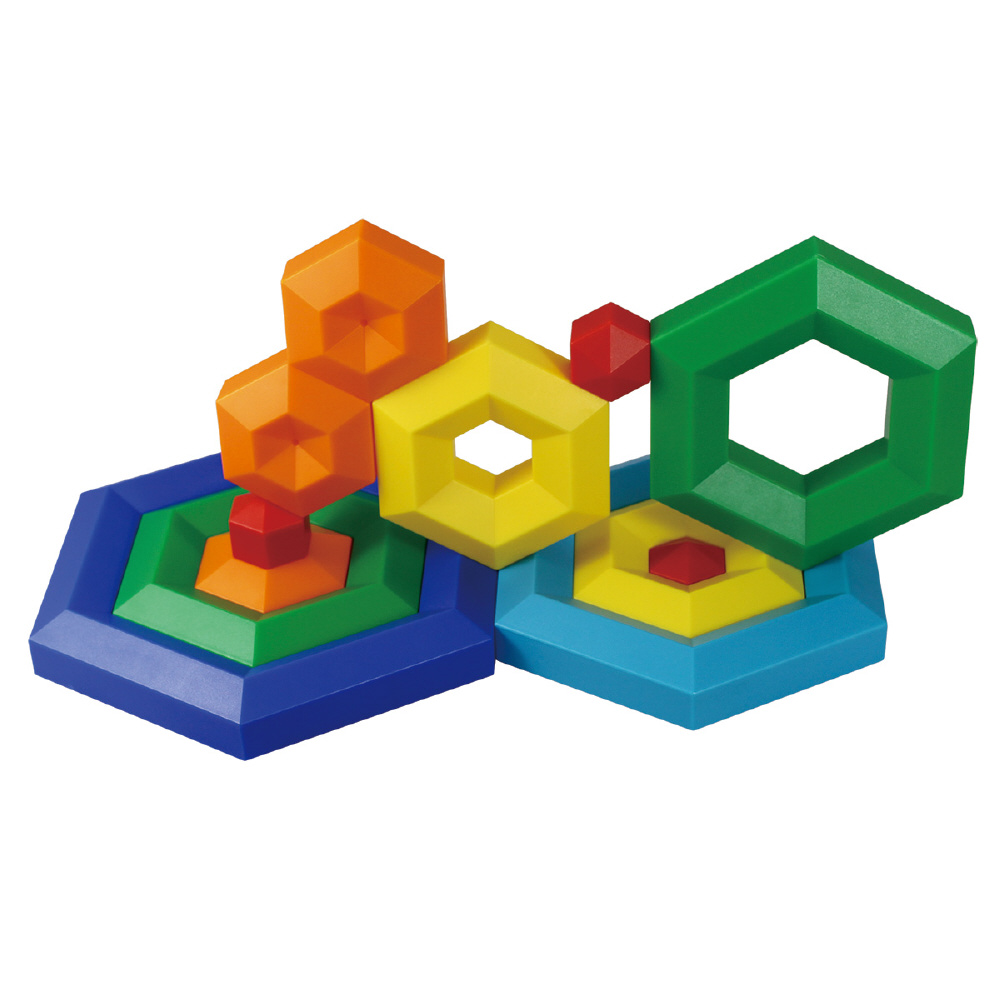 さらに、自分の感性の赴くままにはめ込んだり積み重ねていけば、好きな形を作り出すことができ、創造力も養えると同時に六角形の面白さや不思議にも触れられます。