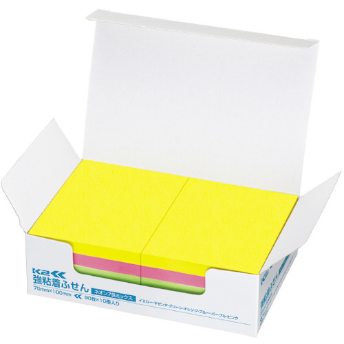 コクヨ 強粘着ふせんK2 75×100混色N10 ノートタイプヨコ(ネオン7色ミックス) K2メ−KN75100X10 64645933