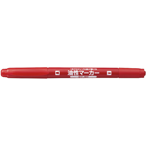 細と細字が書ける油性ツインタイプの赤色です。