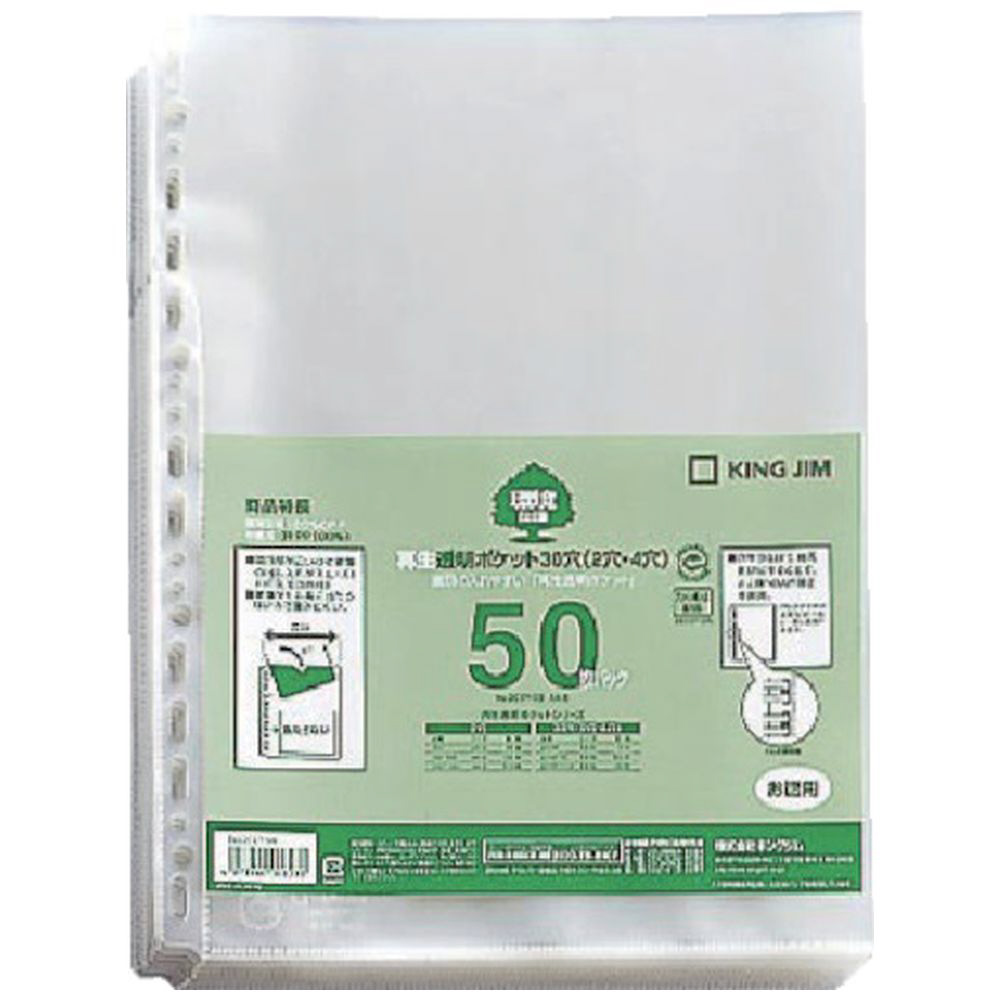 キングジム 再生透明ポケット30穴A4S (50枚入) 207P50