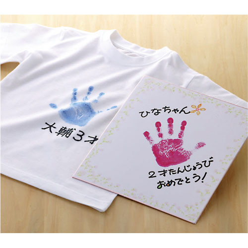 布にも捺(お)せる特殊インキと大型スポンジパッドのセット。色紙、アルバムなどの紙や、布にもくっきり捺(お)せる特殊なインキを採用。布に捺(お)した場合、アイロンをかければインキが定着し、洗濯をしても落ちにくくなります。お子様の手でインキを全量使用した場合、付属インキ1本で約300回のてがたをとることができます。