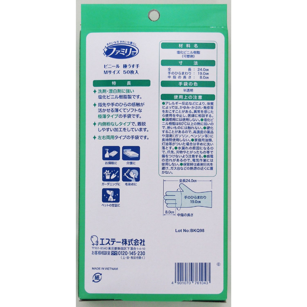 ファミリー ビニール 極うす手 M 半透明 50枚