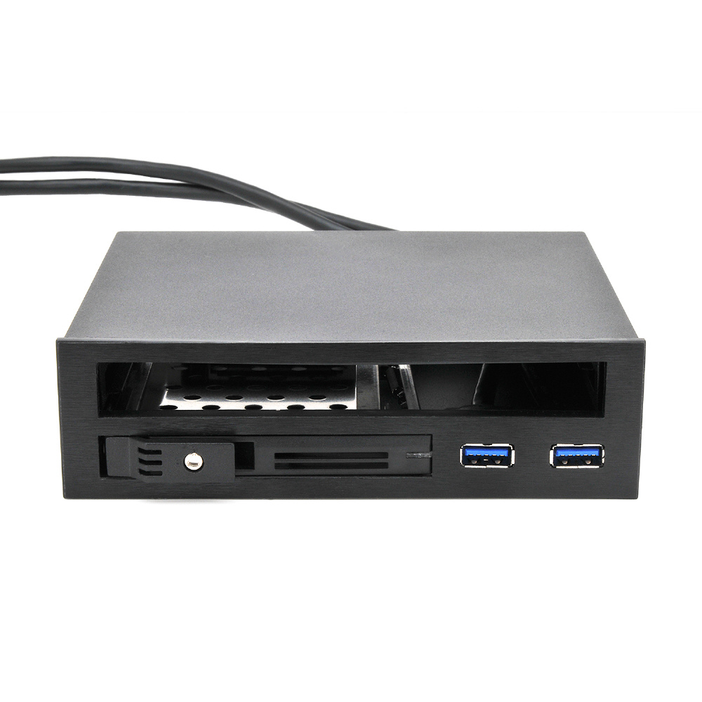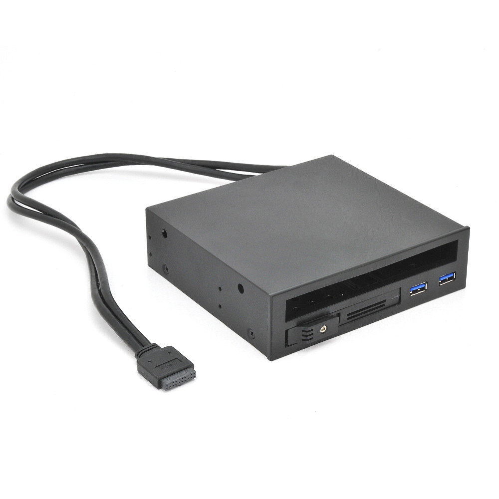 ひとつの5.25インチベイにスリムドライブ×1、2.5インチHDD/SSD×1、USB3.2 Gen1ポート×2を増設可能なリムーバブルラック