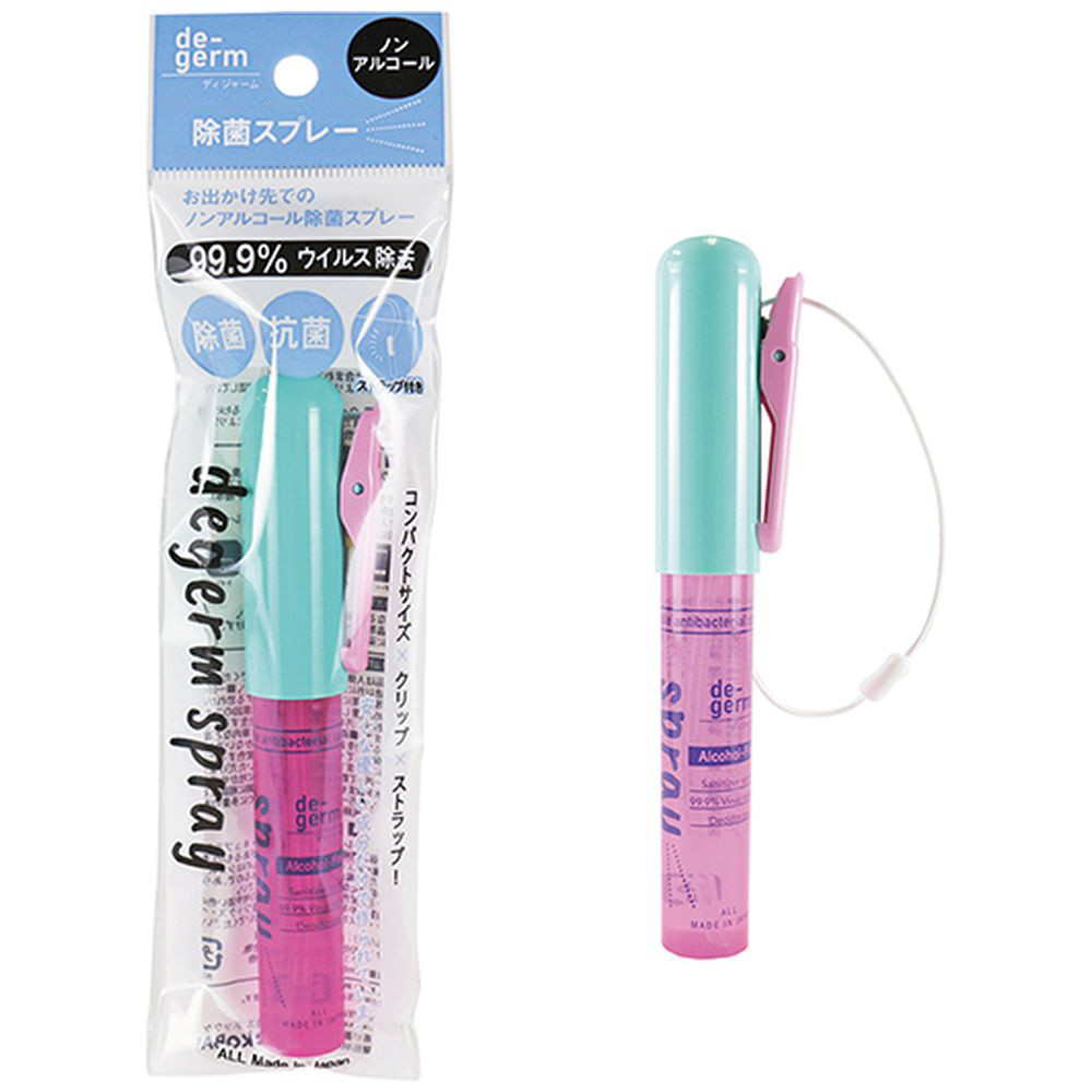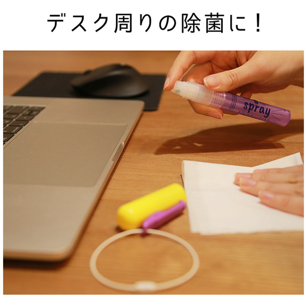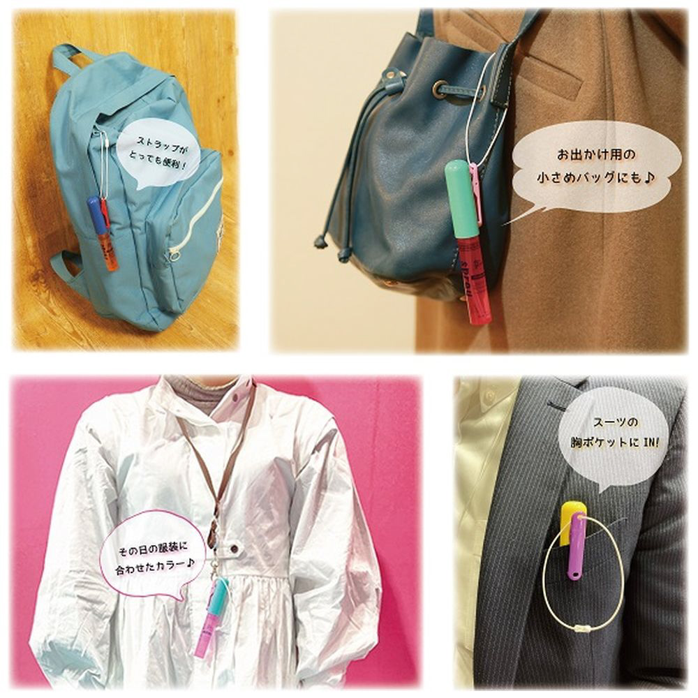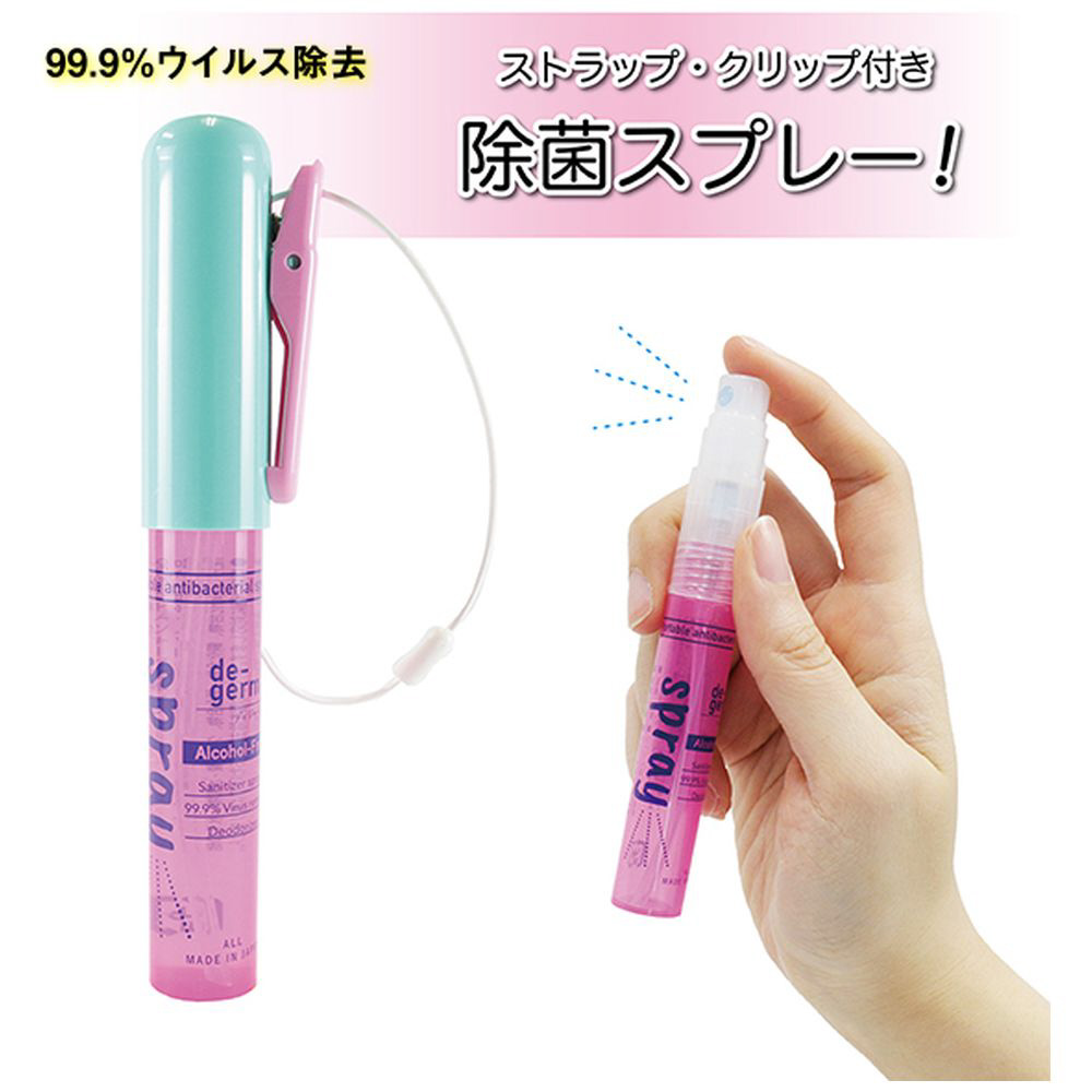 持ち歩きに便利なストラップ付き!お出かけ先でのコンパクトノンアルコール除菌スプレー。菌を取り除くだけではなく抗菌作用が18時間続きます。