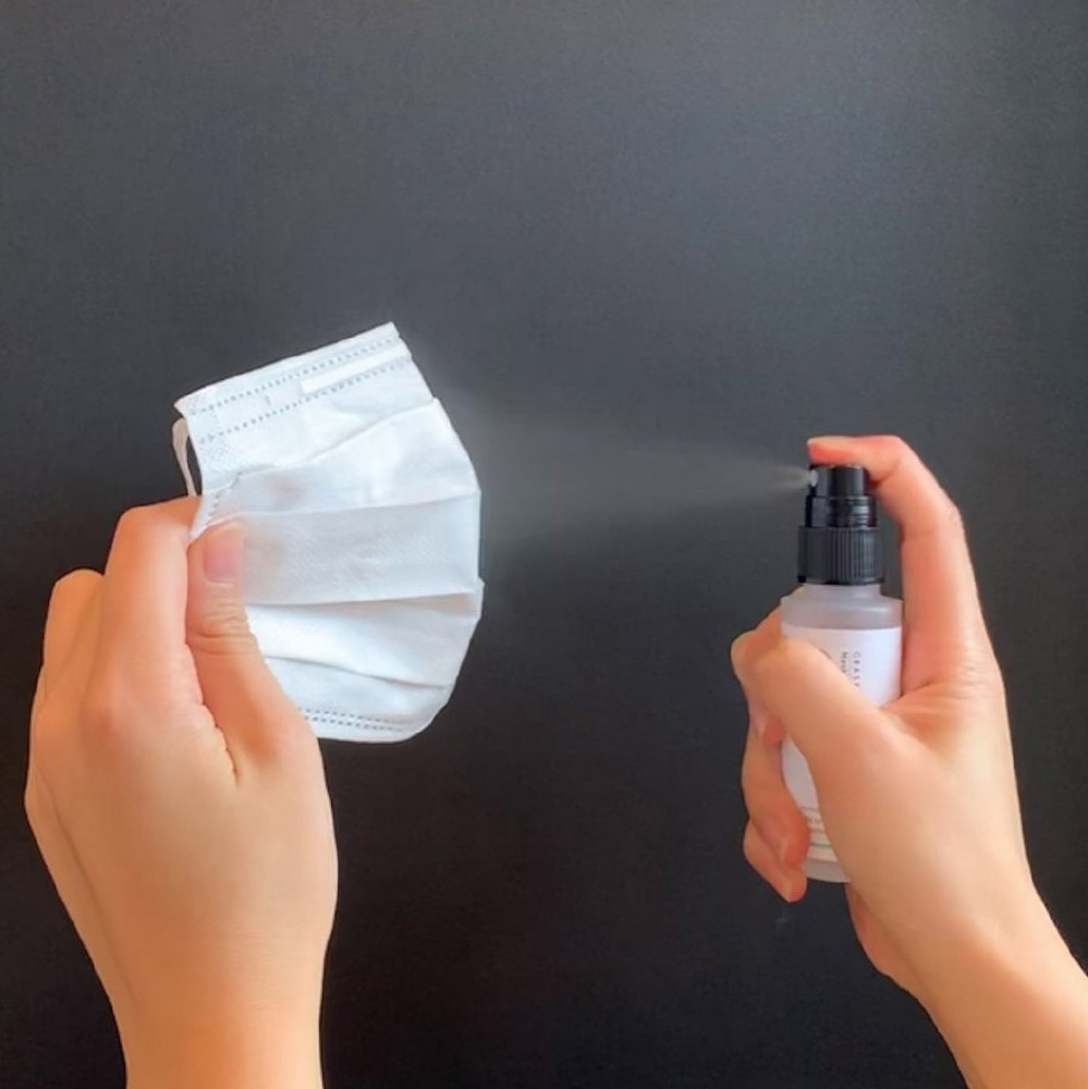 植物原料の発酵アルコールとサトウキビ由来の消臭原料でつくられたスプレーで、マスクの除菌・消臭をすることができます。香りは、100%天然の精油で香り付けをしています。