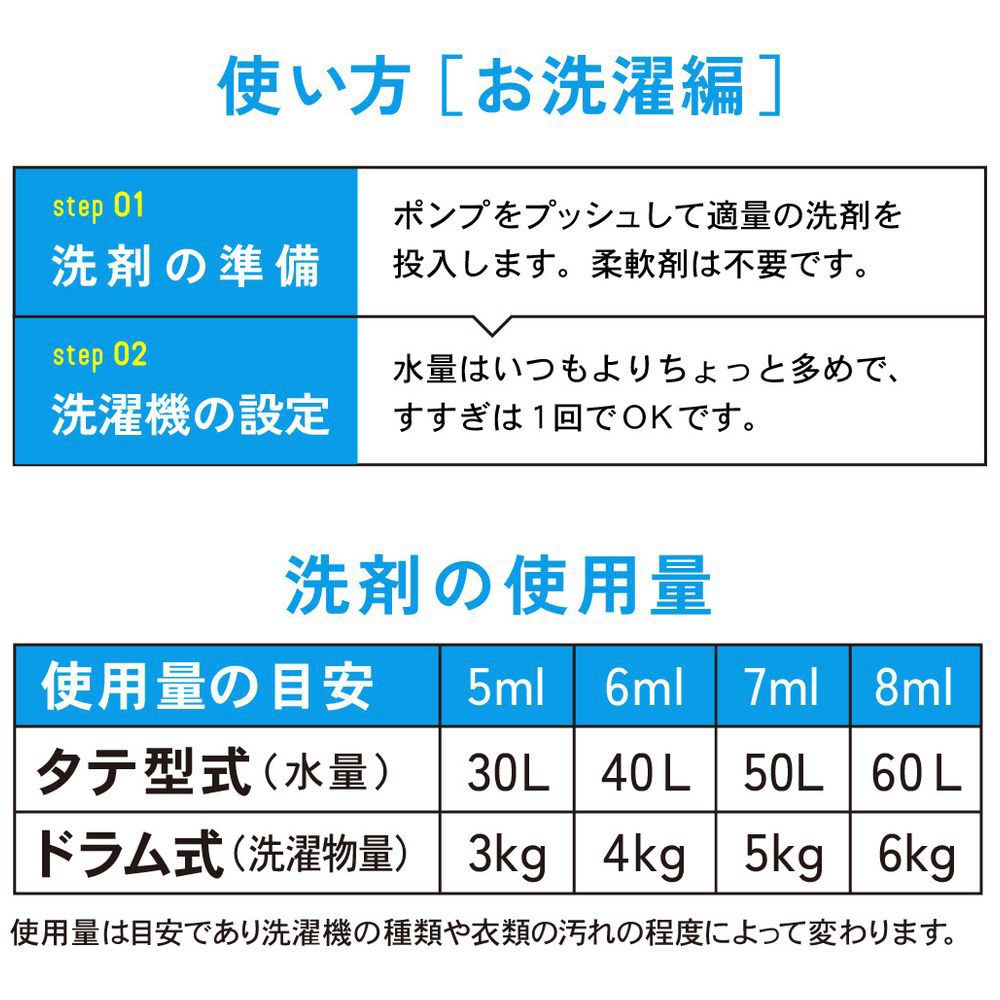 ■成分:植物由来の界面活性剤15%[脂肪酸アルカノールアミド、ソルビタン脂肪酸エステル、高級アルコール系(非イオン)、ベタイン系](洗濯1回あたりの界面活性剤使用量はわずか0.75ml)