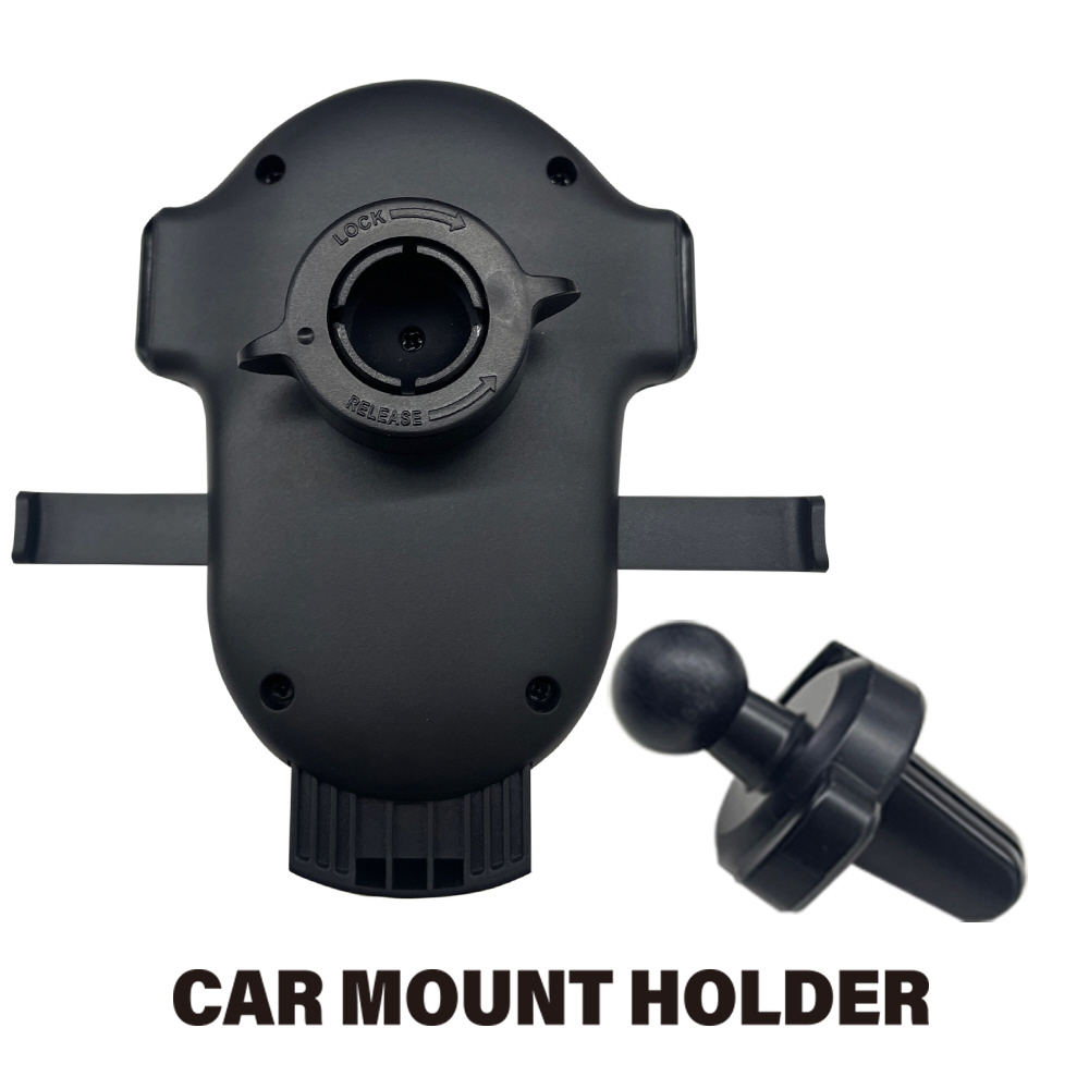 スマートフォンをしっかりホールド可能な、サイドアーム搭載のスマートフォンホルダー。装着はスマホを下にワンプッシュ。360°回転調整可能なボールジョイント搭載で、スマートフォンの縦置き、横置き自由自在!