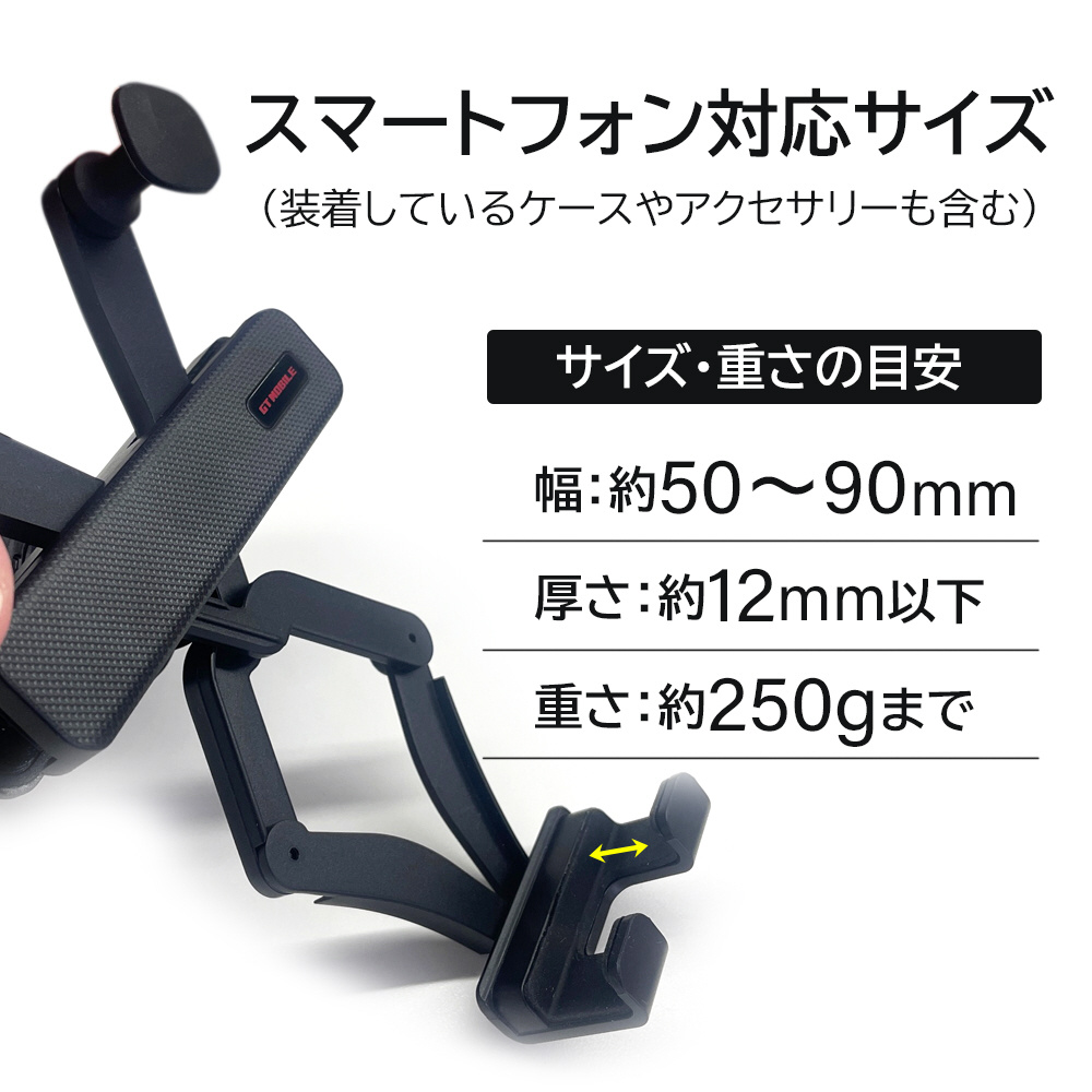 スマートフォンをしっかりホールド可能な、スライドアーム搭載のスマートフォンホルダー。スライドアームが伸びてスマホをしっかりホールド。360°回転調整可能なボールジョイント搭載で、スマートフォンの縦置き、横置き自由自在!