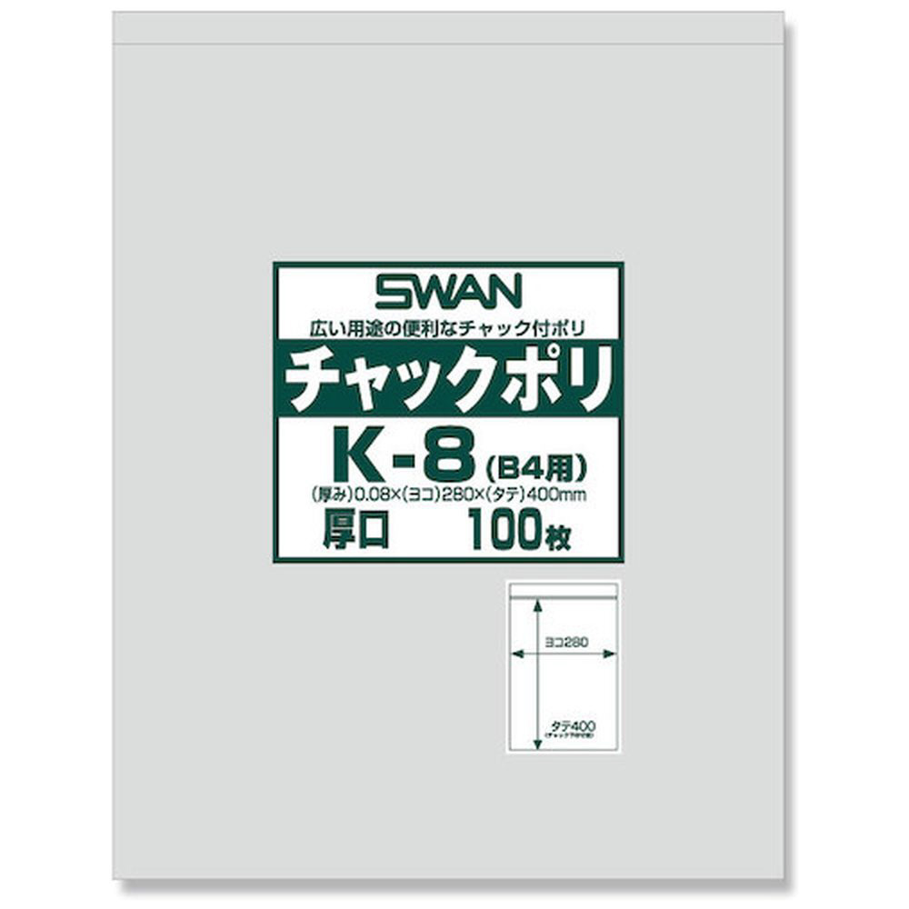 スワン チャック付ポリ袋 厚口 K−8(B4用) 100枚入り 006656070