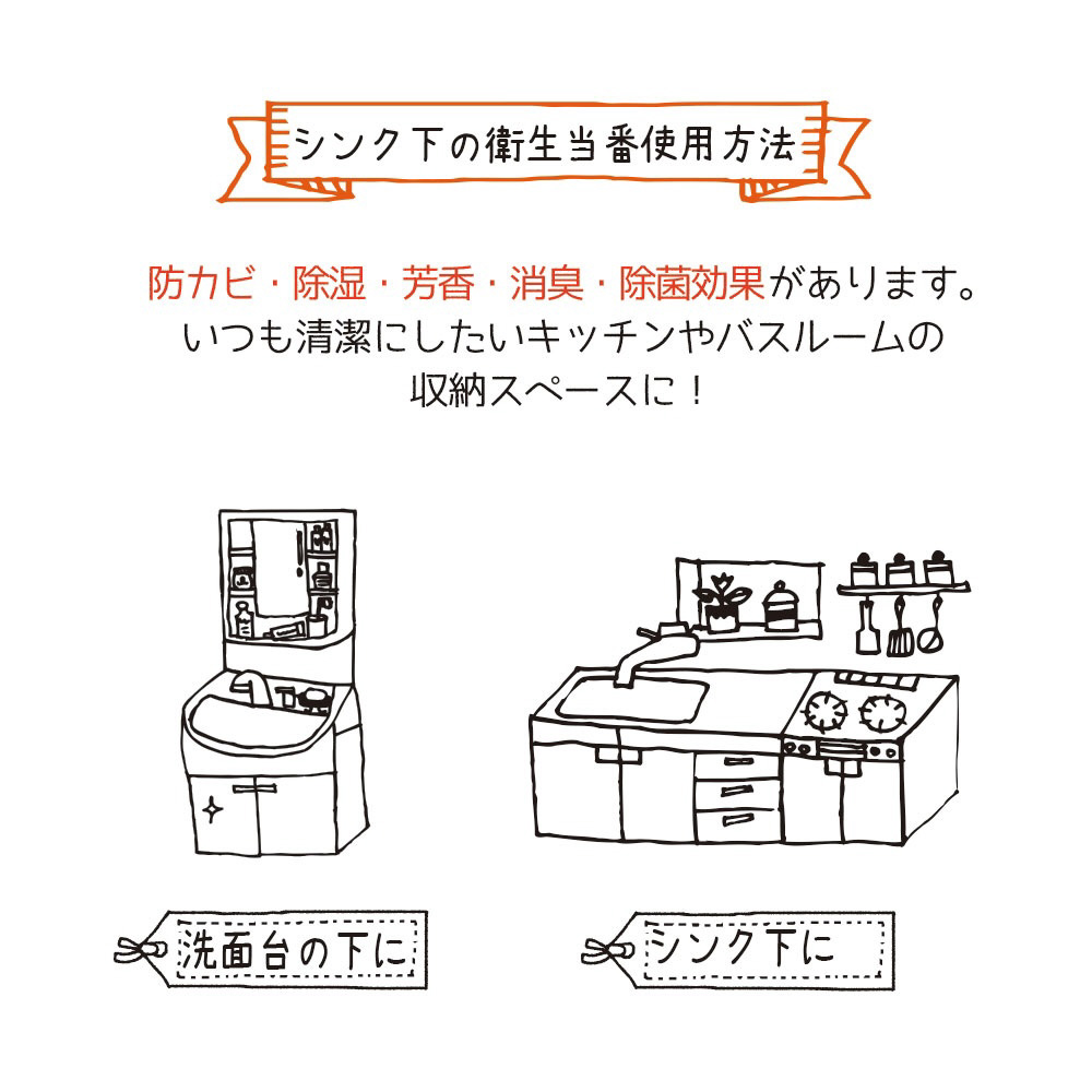「防虫」「防カビ」「脱臭」「除湿 」とコンパクトながら4つの効果を発揮。