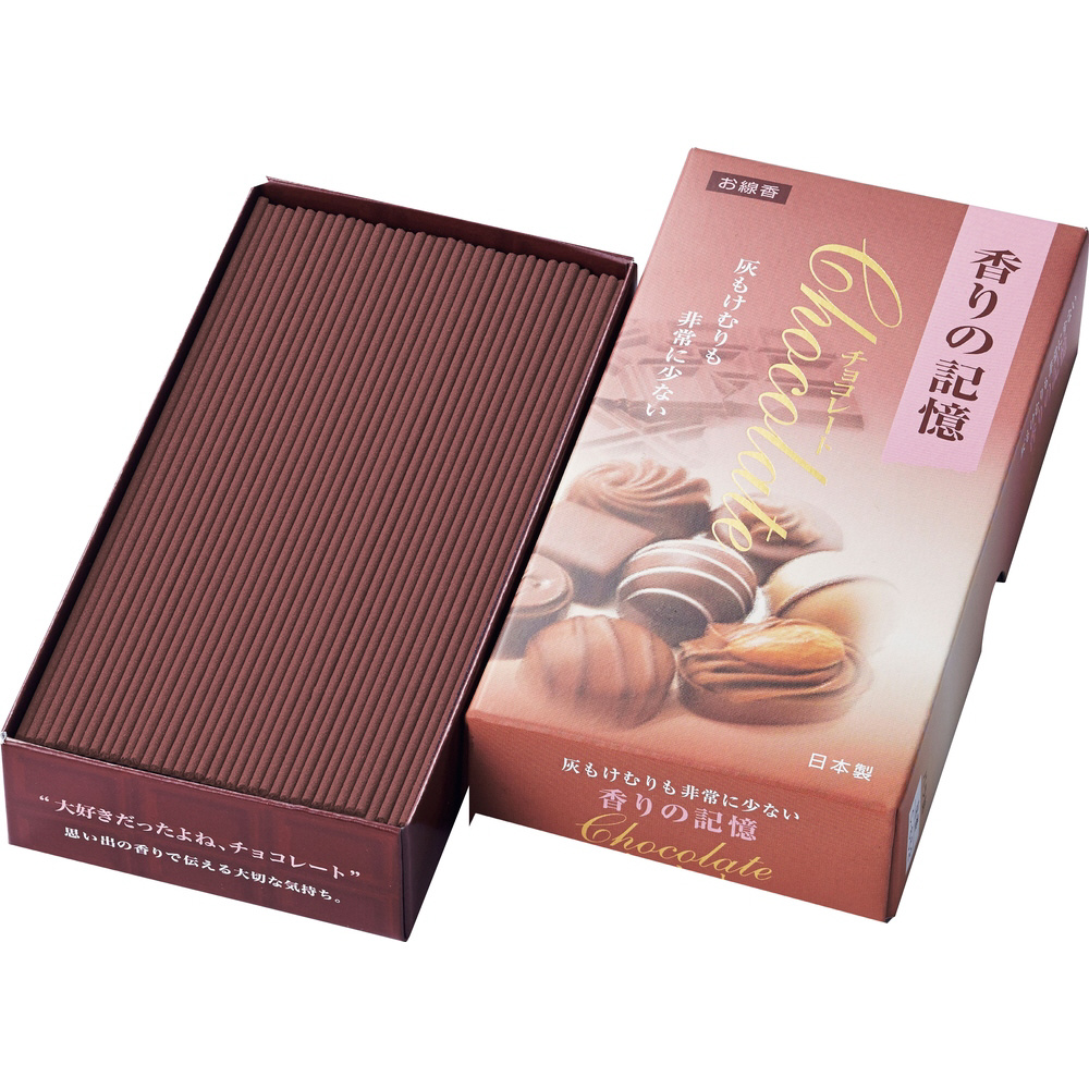 故人の好物をお線香の香にしました。ミルクチョコレートの香りの煙も灰も少ないお線香です。