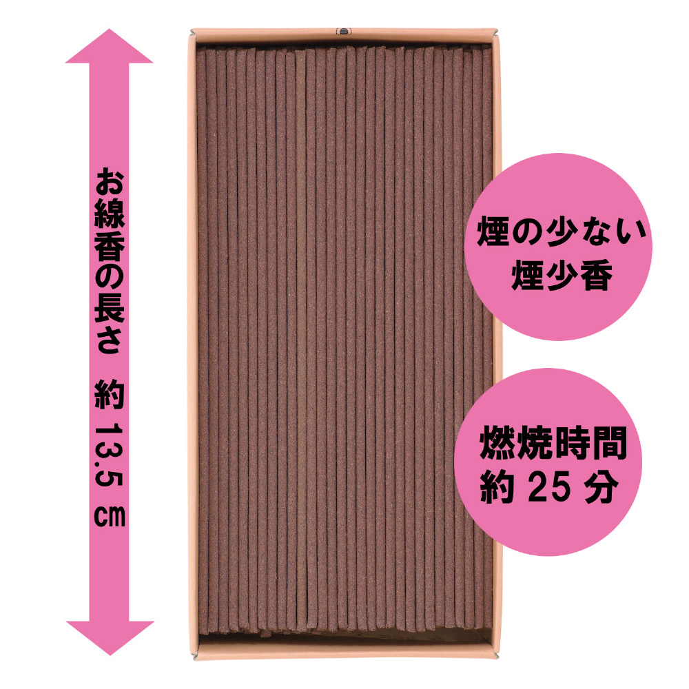 線香の香りは身と心を清浄にし、すみずみまで行き渡るところから、全ての人に行き届く慈悲の薫りを表しています。そんな静かな祈りのために、用途に合わせた線香です。