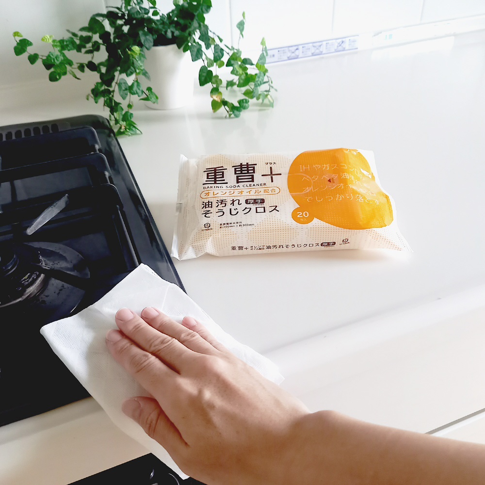 重曹水溶液を電気分解して出来る重曹電解水で汚れをしっかり落とします。