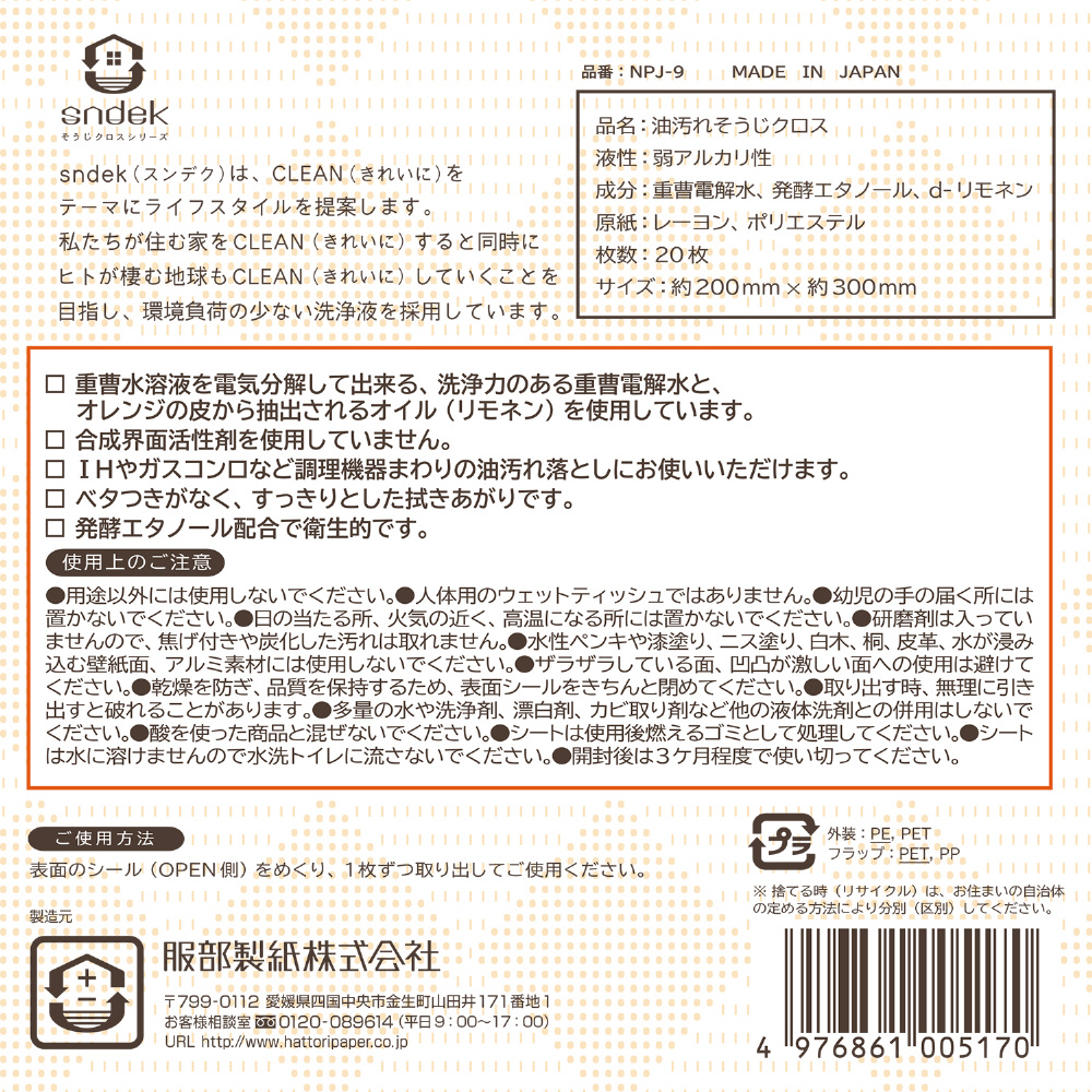 NPJ−9油汚れそうじクロス20枚