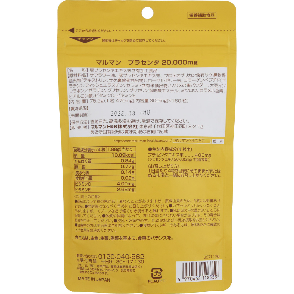 4粒中:プラセンタエキス末(生胎盤換算20000mg) 400mg