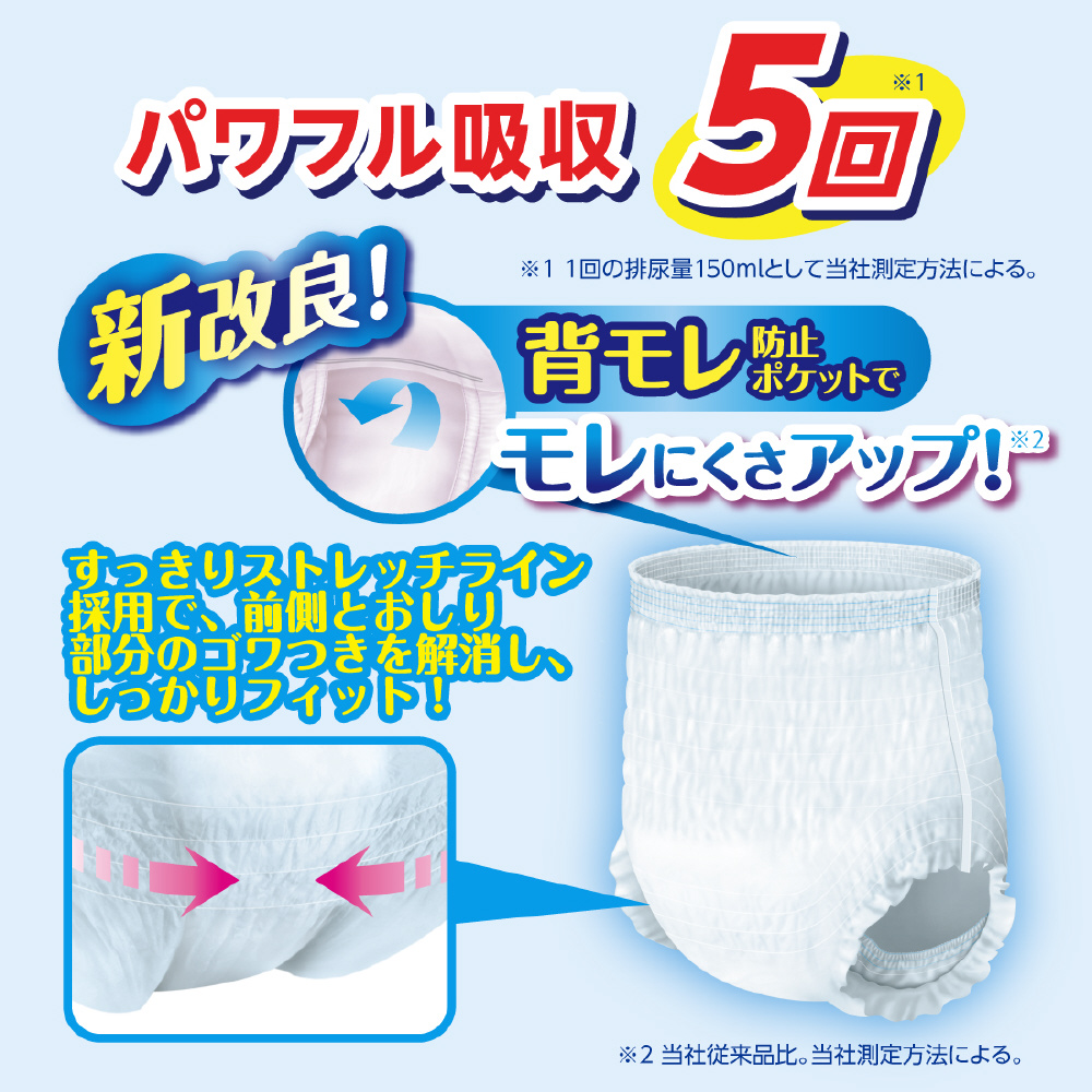 ●約5回分の吸収量!朝と夜の交換だけでもモレ安心!!