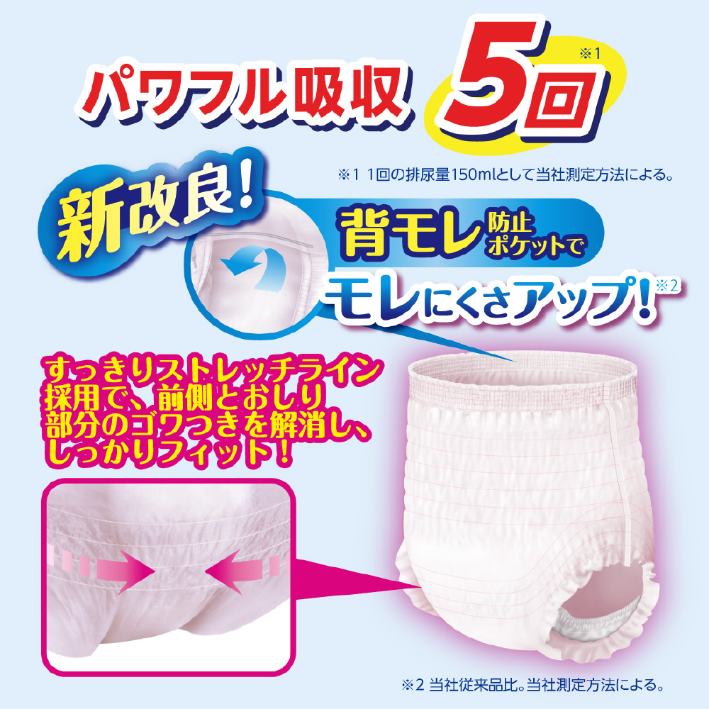 ●約5回分の吸収量!朝と夜の交換だけでもモレ安心!!