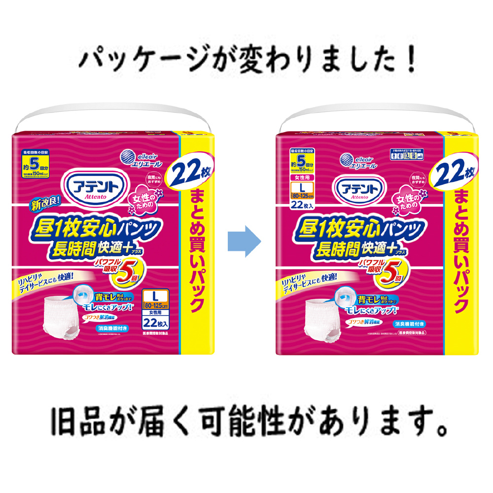 アテント 昼1枚安心パンツ 長時間快適プラス Lサイズ 女性用 22枚入